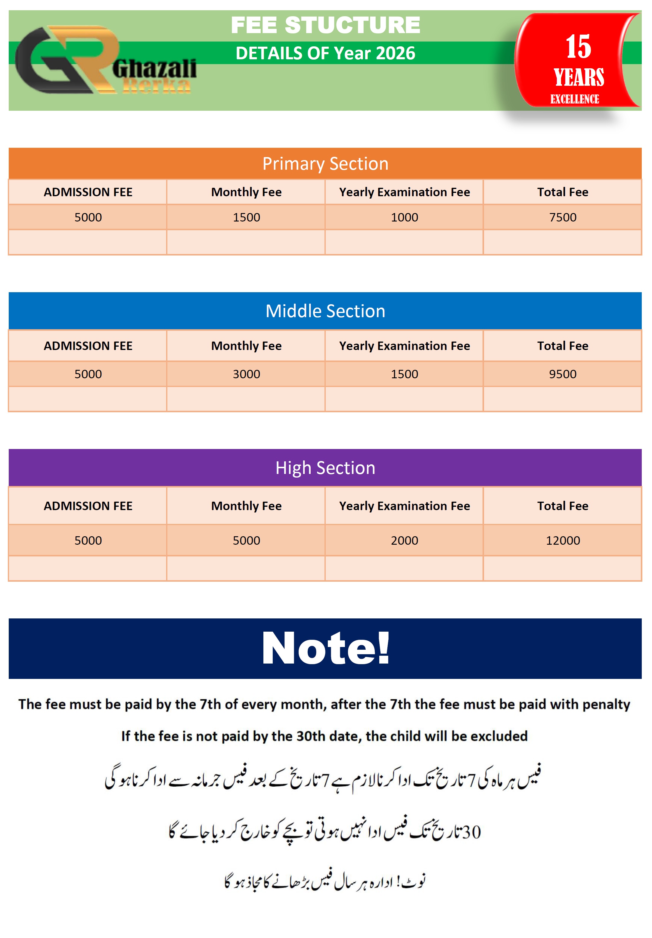 FEE STUCTURE